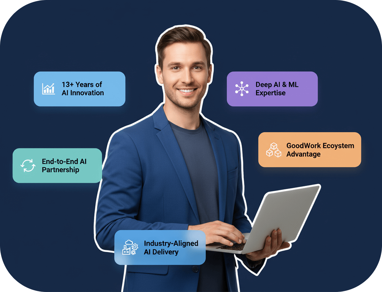 Leverage training, delivery excellence, and infrastructure through the broader GoodWork ecosystem.